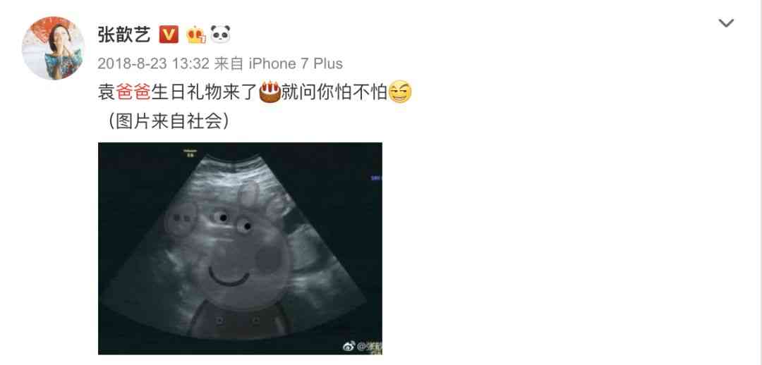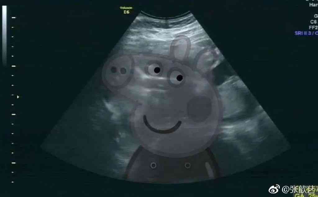 图片上的 B 超图片上还贴了一只小猪佩奇!既点明会是“金猪宝宝”,又很有“二姐”张歆艺的风格。