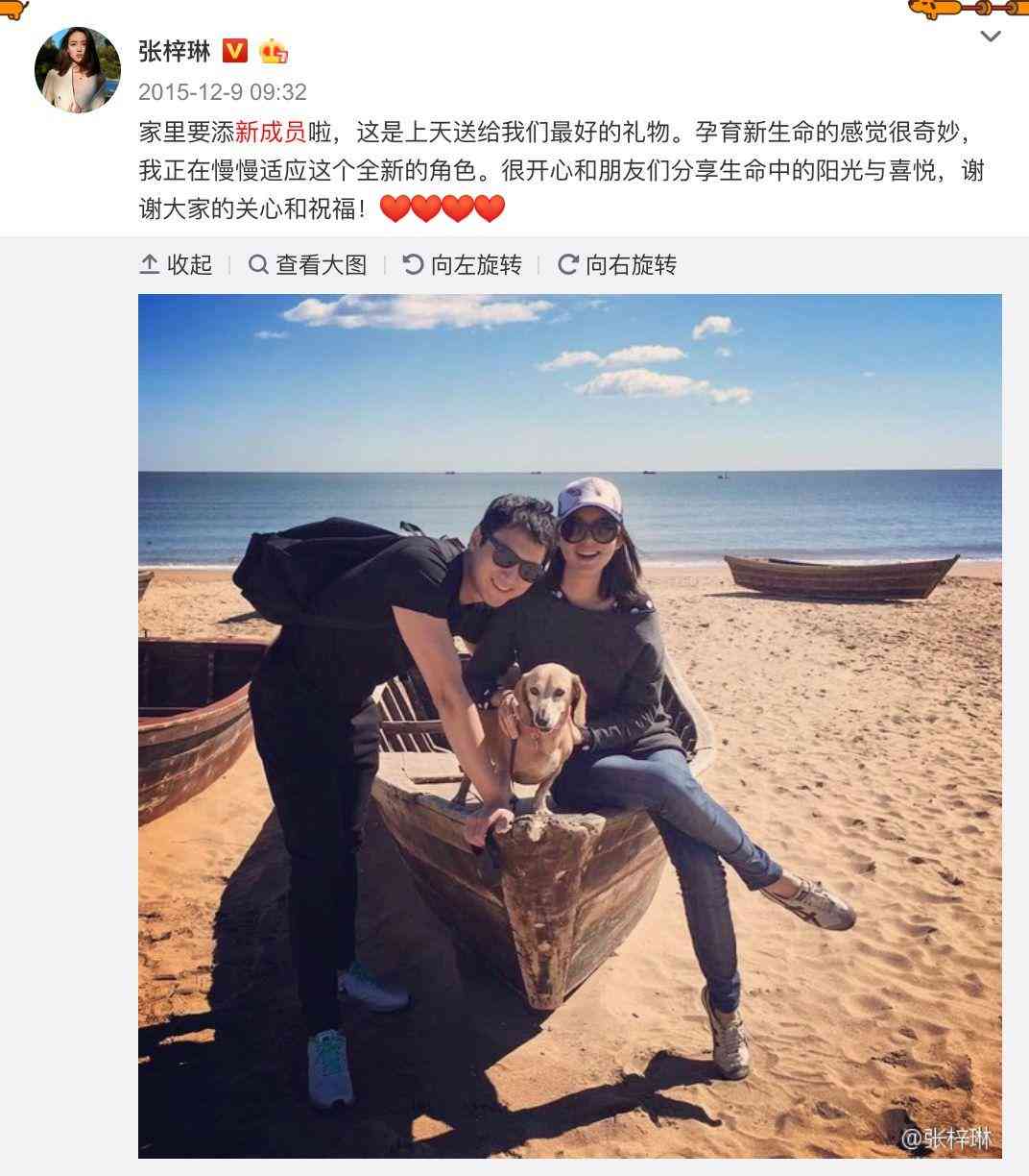 大家都以为“世界小姐”张梓琳当初是通过自己的微博官宣怀孕的消息,像这样
