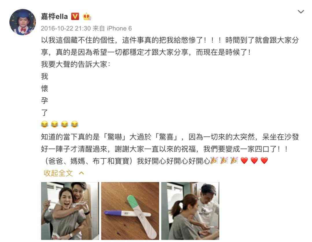 在社交平台上直接晒验孕棒的方式,一般人可真做不到,但这官宣的方式超符合她的性格!