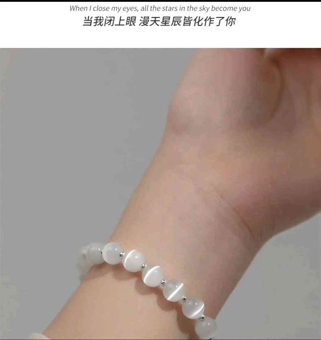 让我看看,还有人没安排上这么好看的手链吗?干净清澈的月光石手链,就两个字:好看!!!寓意也超好,是猫眼石、灰月光、小铃铛串成的,猫眼石寓意:希望、好运和祝福。灰月石代表:新生、优雅和高贵,因为它有着淡雅、柔和的颜色。还有这两个小铃铛,微微响,不会很大声,价格:68.08元。手链的清冷感氛围拉满,戴上超级好看!!!