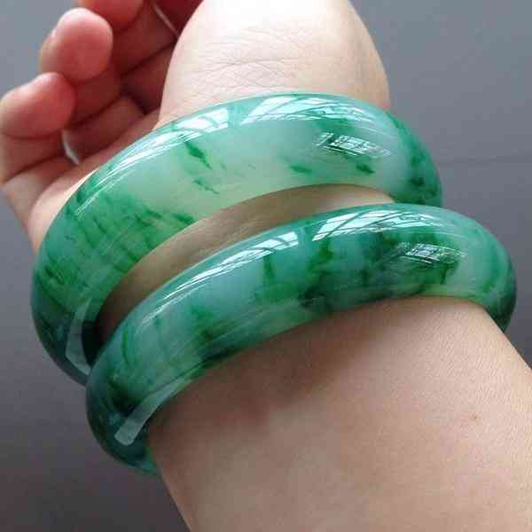 (B货翡翠镯,色泽不均匀、浓淡不一)