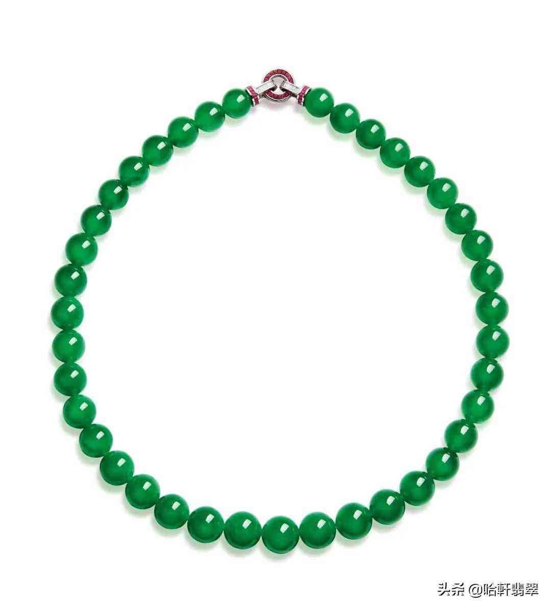 像上图这一串帝王绿珠链,出现于2020年的苏富比拍卖会上,成交价达到了惊人的8070万港币!非普通人能企及。