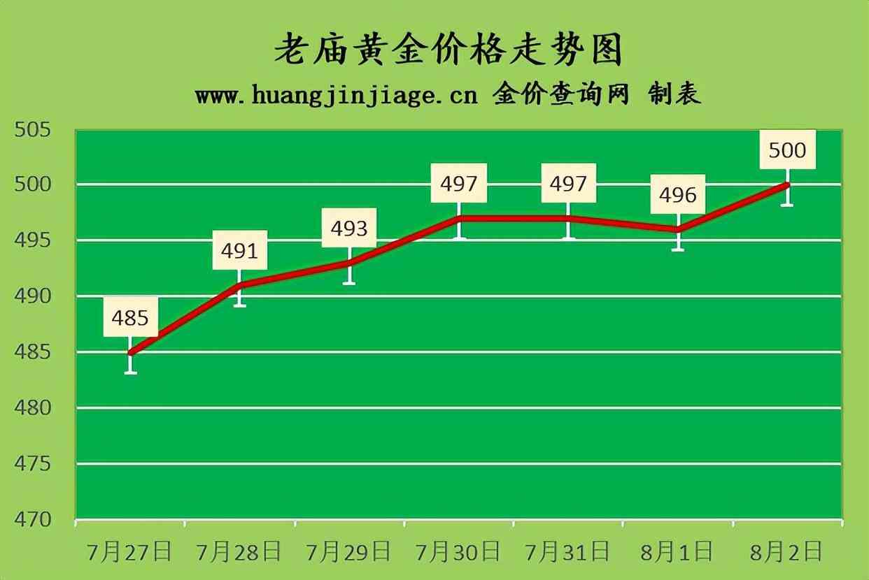 周大福黄金价格501元/克(涨3元),六福黄金价格501元/克(涨3元),周生生黄金价格503元/克(涨7元),金至尊金价501元/克(涨3元),谢瑞麟金价502元/克(涨4元),老凤祥黄金价格507元/克(涨8元),老庙黄金价格500元/克(涨4元),菜百金价495元/克(涨3元),周大生金价501元/克(涨3元),中国黄金价格495元(涨3元),金大福金价496元/克(涨3元),潮宏基金价501元/克(涨3元),周六福黄金价格502元/克(涨3元)。