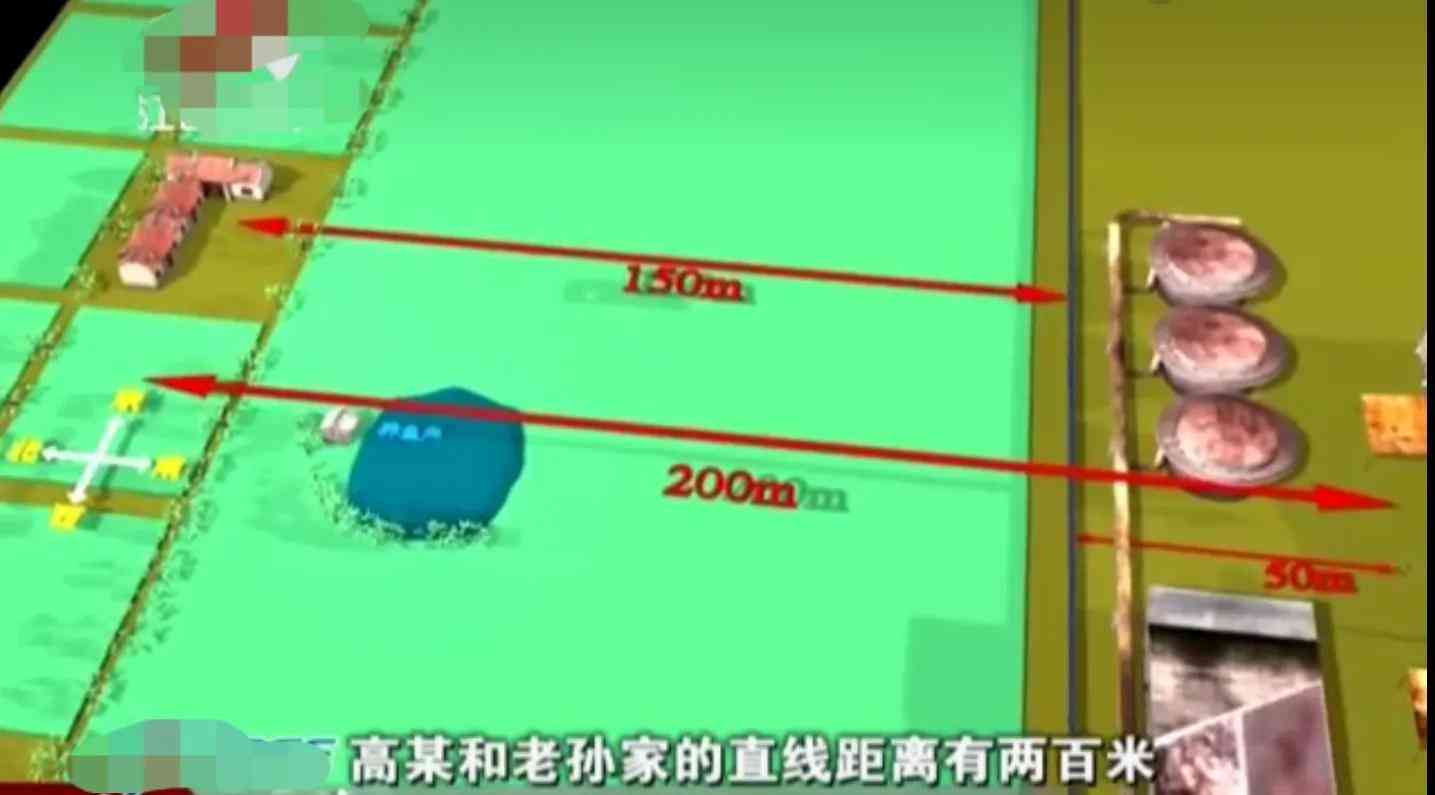 经过测量,高司机练习时的位置距离厂房围墙有50米,围墙直线距离孙俊文家大概150米(中间还有一个养鱼户搭建的棚子),两个距离加起来200米。