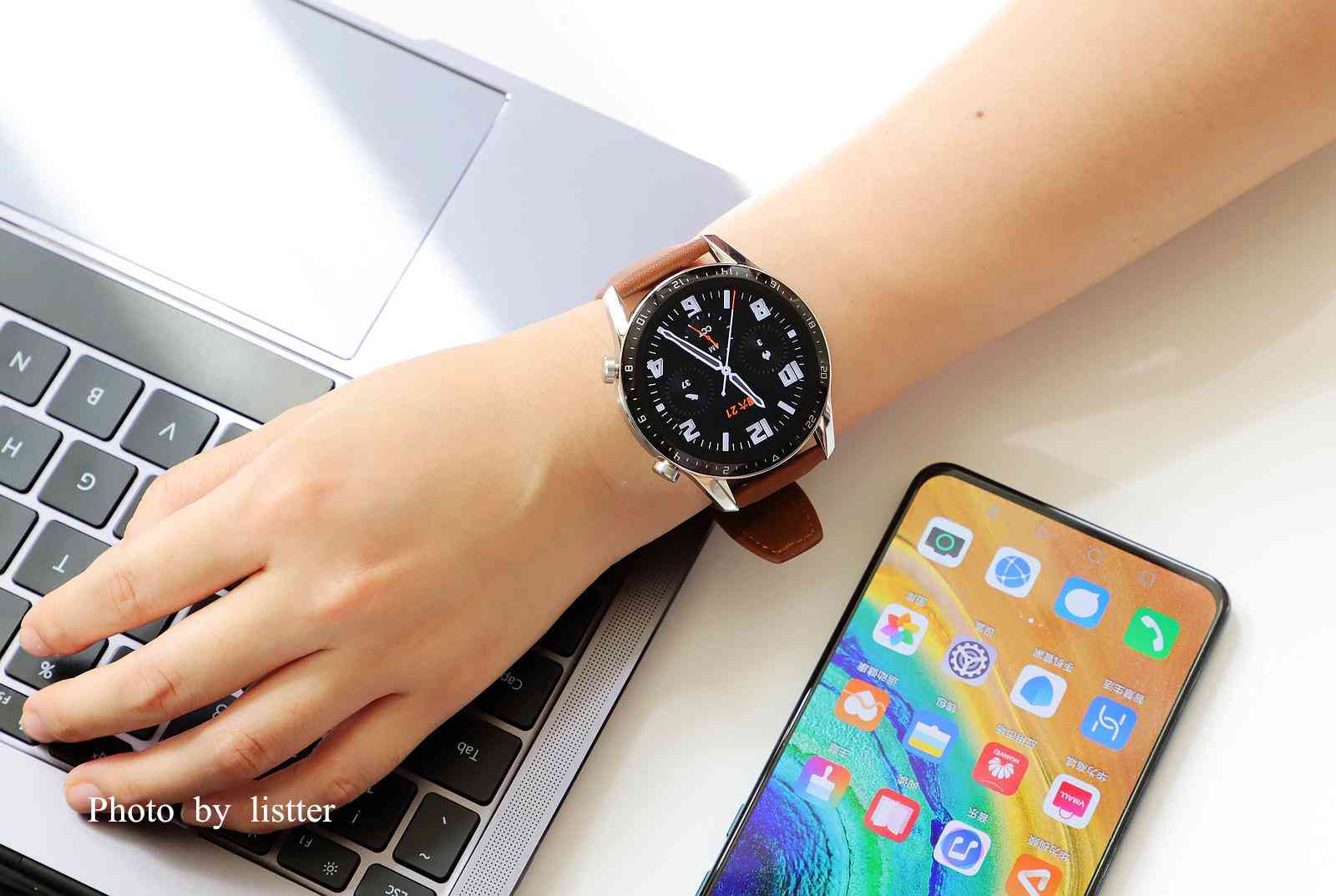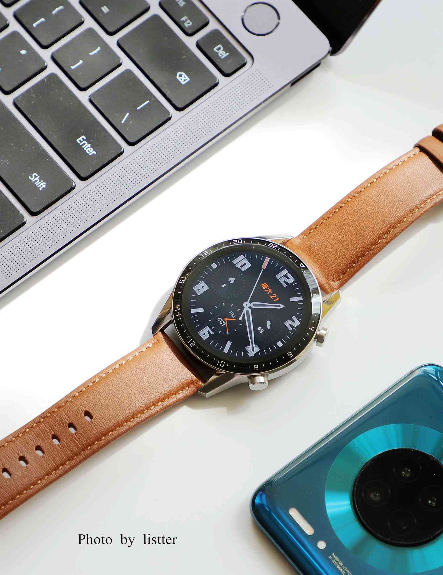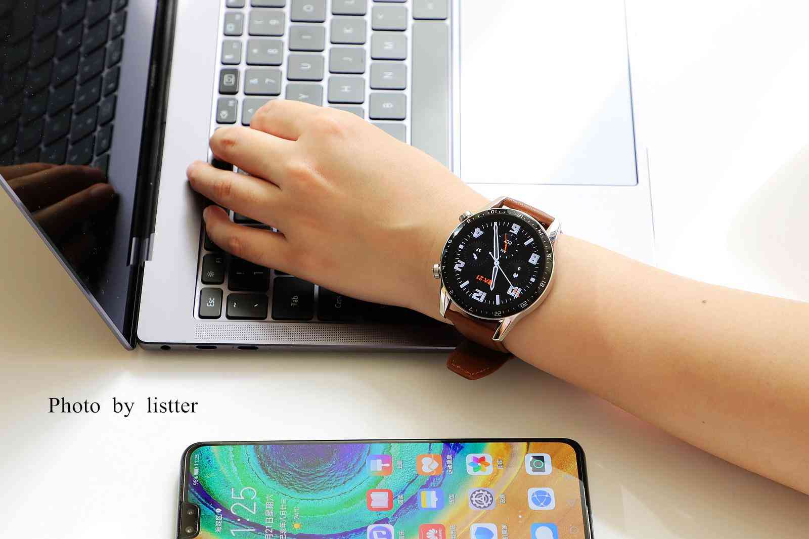 初看HUAWEI WATCH GT2,很容易在视觉上认为就是一款精致的腕表,棕色真皮表带配合一体化3D玻璃表面和精钢表圈机身,让佩戴者可以从容出入各种高端场景不显尴尬,同时,它还内置强悍的自研可穿戴芯片麒麟A1,带来强劲的续航实力。HUAWEI WATCH GT2本身也是一个专业的户外运动手表,有专业的运动监测和科学的健康管理功能。而当专业运动性能在与精致外观相结合,这点就非常厉害了,要知道,市面上的竞品比如Garmin Forerunner 245、5X Plus产品,外观一看就是运动和户外风格,很难在正式商务场合佩戴,这点HUAWEI WATCH GT2要胜出不少。
