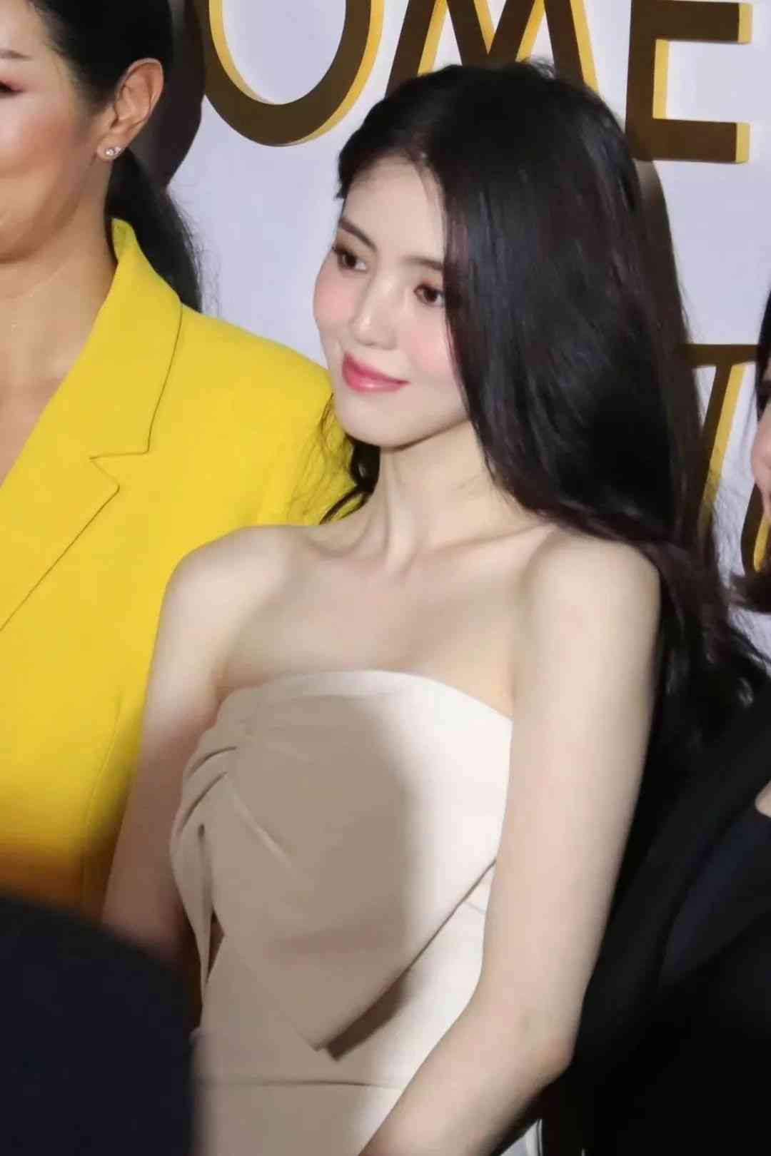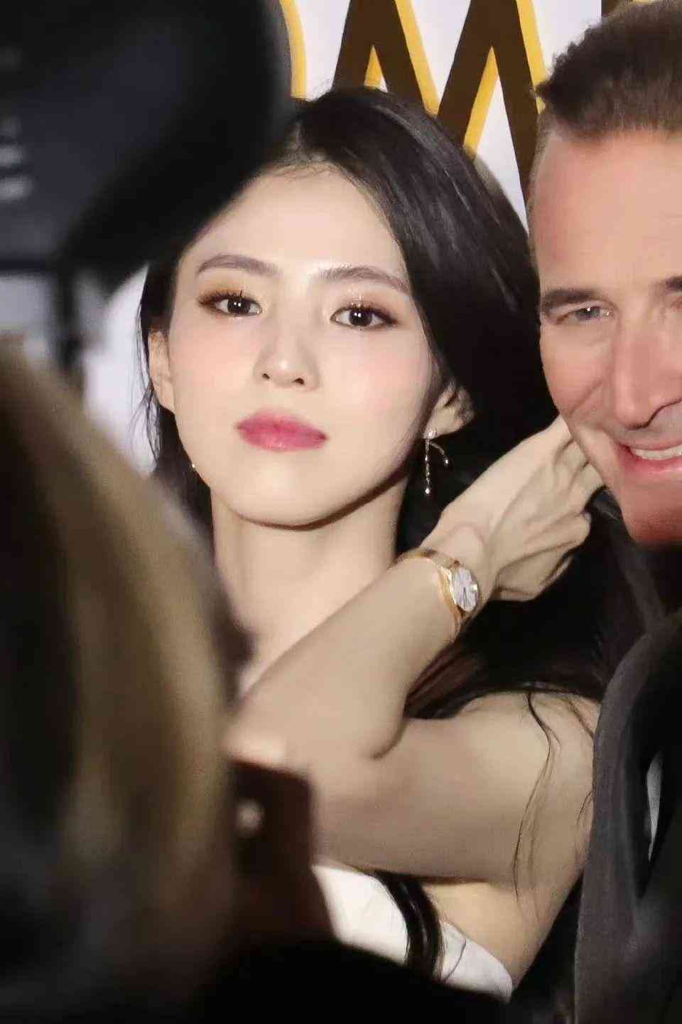 身穿抹胸礼服的韩素希不仅身材优势尽显,冷艳妩媚的“轻泰妆”让她毫不费力地就营造出了清冷感氛围,在合影时吸引住了所有人的目光。