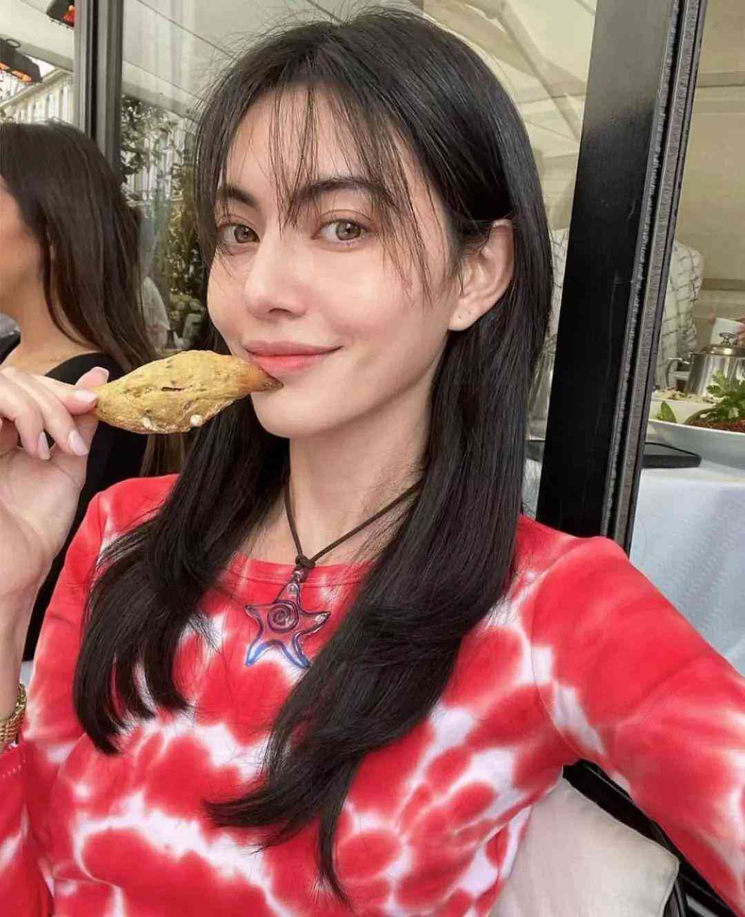 Mai Davika也游刃有余地拿捏了“轻泰妆”,天生眉毛毛流感较强的她,在画眉妆时会将眉型描画得更为精致,根根分明的睫毛放大了双眼,大面积的粉嫩腮红突显好气色,水嫩的唇釉打造出嘟嘟唇的妆效。