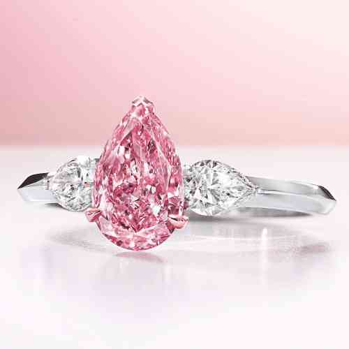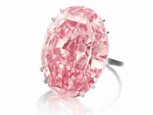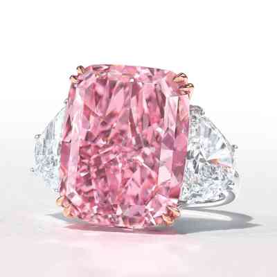 2010年,这颗完美的粉红色钻石在香港佳士得拍卖会上以超过 2300 万美元的价格卖给了一位不知名的竞标者。这颗钻石是同类中的一颗,具有强烈的粉红色和非常非常轻微的内含物净度。它被切割成祖母绿形状,重约14.23克拉。完美的粉红色钻石镶嵌在花式戒指中的两颗规则形状的钻石中。