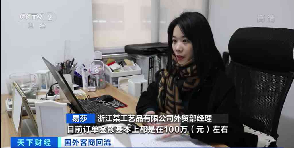 浙江某工艺品有限公司外贸部经理 易莎:上周就收到三个订单,有美国、英国,还有希腊的,项目订单金额都在100万元左右。目前还在进行的项目差不多有三十个,询盘、意向还在不停地进来。