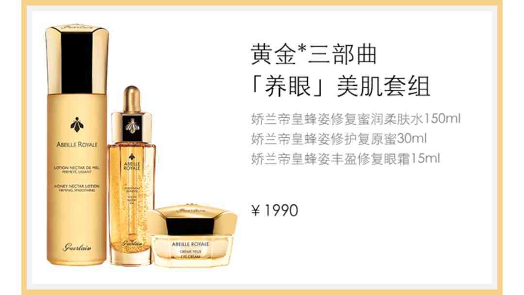 这个礼盒里头的正装是帝皇蜂姿系列的三大王牌。分别是主打调节修护、光滑紧致肌肤功能的柔肤水;补水保湿和抗氧化效果都很优秀的复原蜜;以及具有淡纹效果、改善黑眼圈的帝皇蜂姿眼霜。