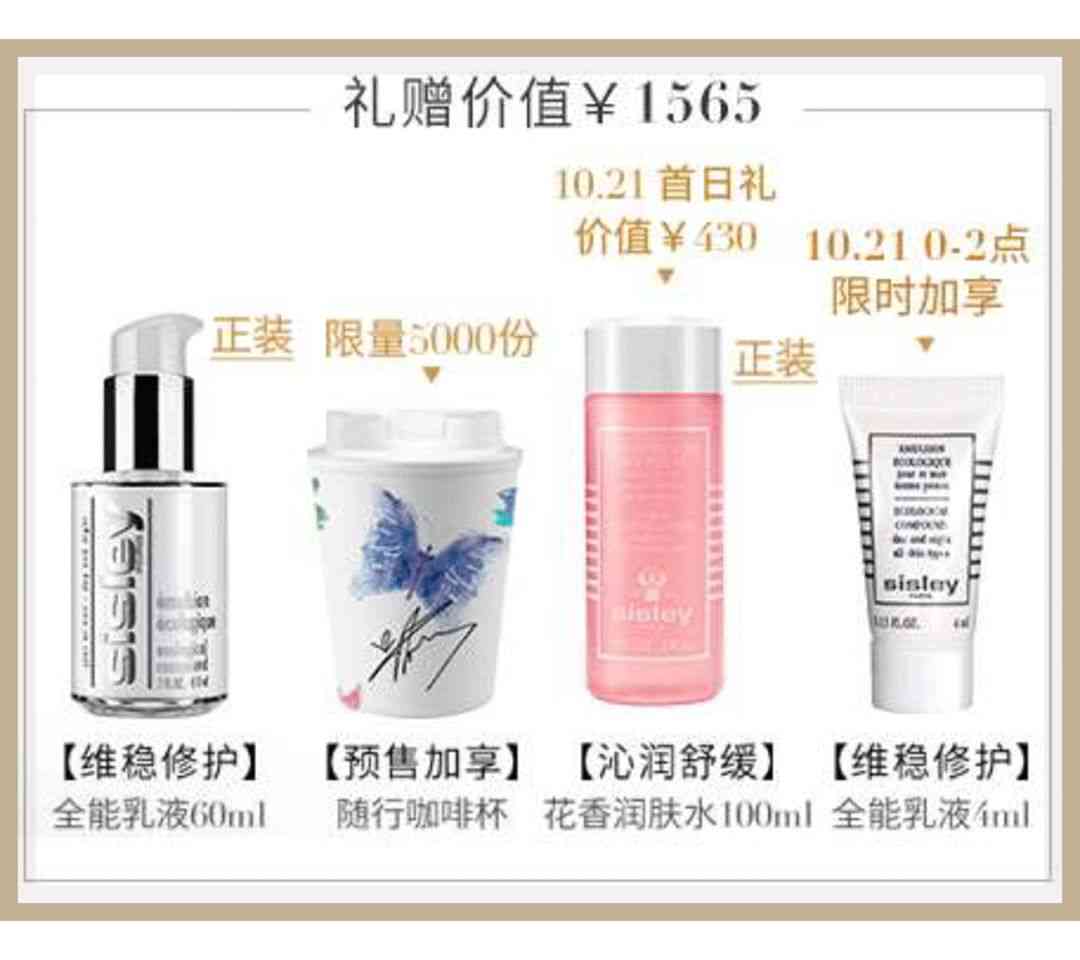 别看这次它的活动力度只是送4样赠品,其中有一样赠品就是60ML的全能乳液,等于花一瓶乳液的钱,却得到125ML+60ML+4ML,将近200ML的容量了,可以用到天荒地老了。