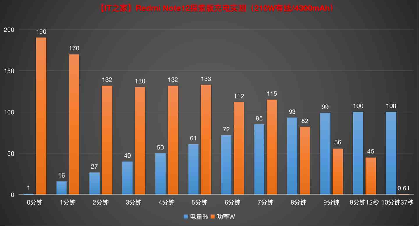 IT之家对 Redmi Note 12 探索版的快充进行了实际测试。