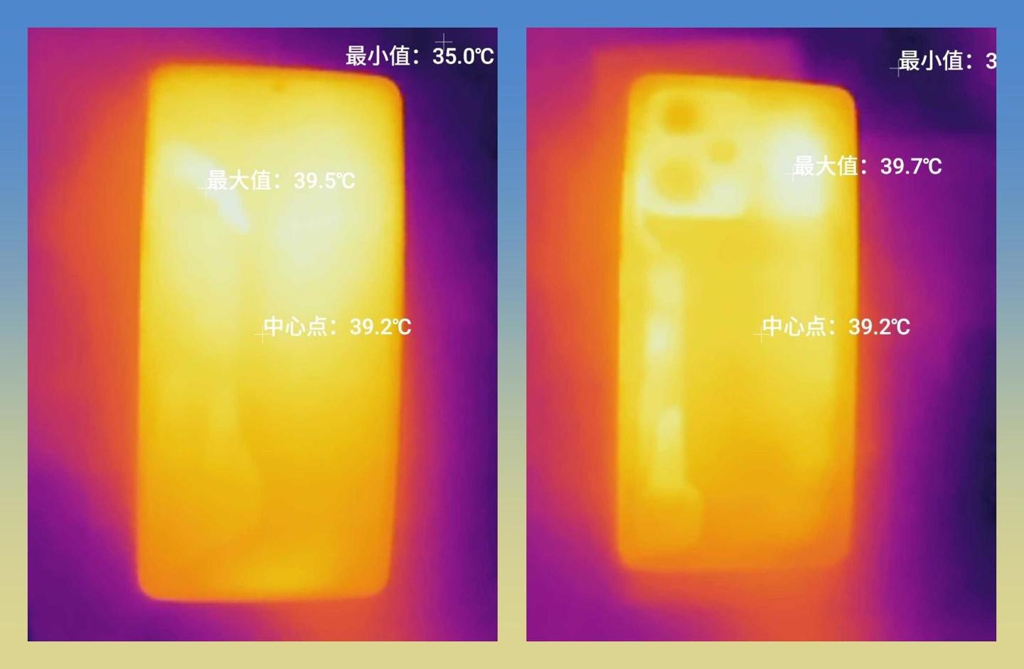 最后是温控方面,北方秋天室内 22° 环境下,Redmi Note 12 探索版 在 20 分钟的《和平精英》游戏中,正面最高温度 39.2°C,背面最高温度为 39.7°C,手感感受到的也仅仅是温热,温控表现相当可以说是相当不错了。