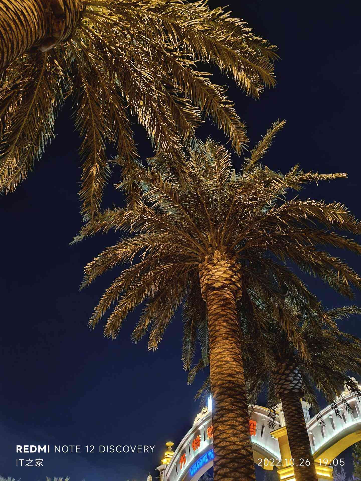 在夜晚环境下,Redmi Note 12 探索版样张的观感非常不错,亮部也尽可能的克制住了光线溢出,倒不是那种夜视仪调教,保证了夜晚的氛围感。开启 AI 模式之后,识别到夜晚场景,画面亮度、对比度会明显提升。