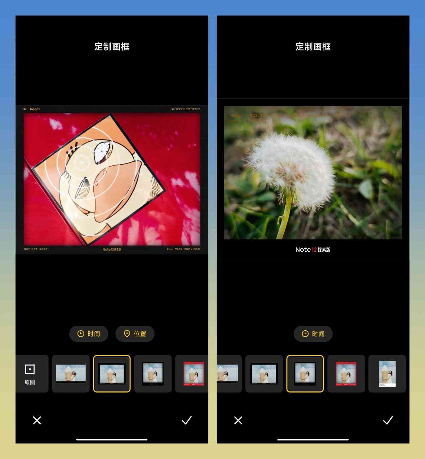 不仅如此,Note 12 胶片相机还专门设计了胶片画框,在照片编辑里,即可添加不同风格、样式,但同样都是“逼格满满”的画框。