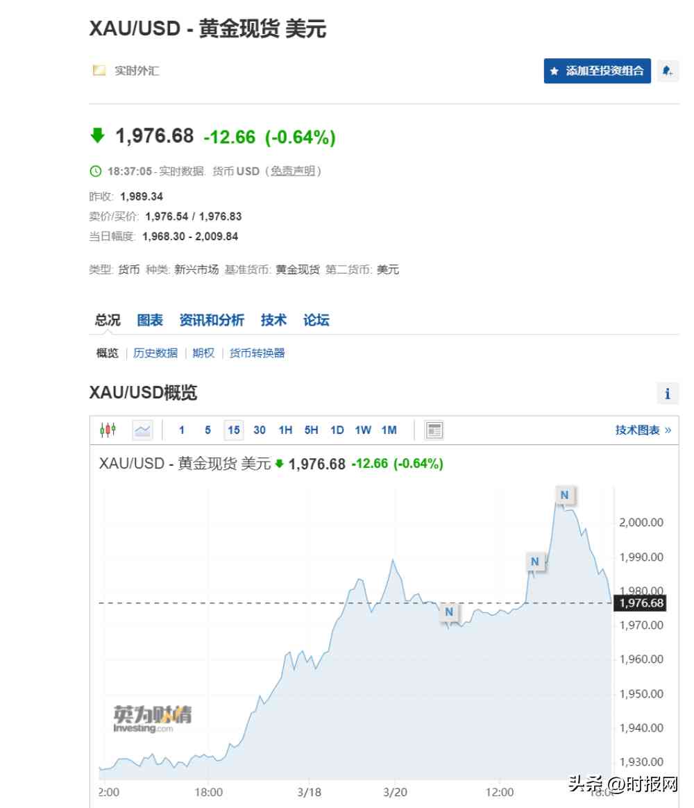 3月20日,现货黄金盘中一度站上2000美元/盎司,为2022年3月来首次,随后出现冲高回落。
