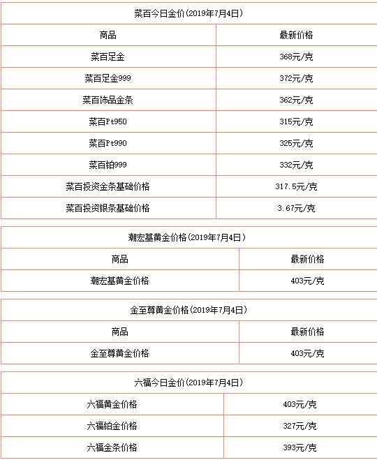 2019年8月29日今日黄金价格今天多少一克查询包括:周生生/周大福/六福珠宝/老庙黄金/老凤祥/菜百/太阳金店/潮宏基/金至尊等品牌999足金价格查询。