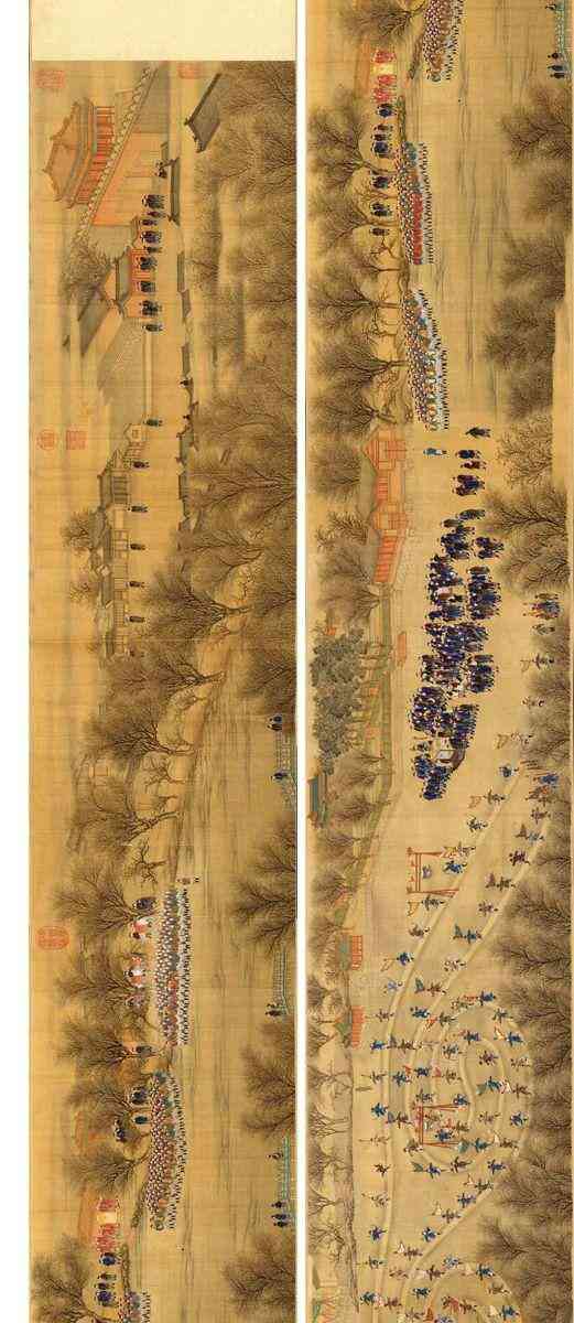 这套宫廷画很有名,共十二幅,只展两幅。北京原来的展应该还有《乾隆岁朝行乐图》,但这次只做成了喷绘在墙上。