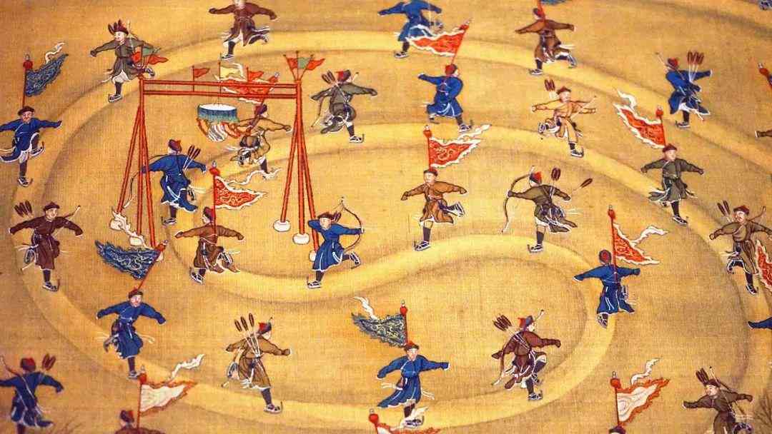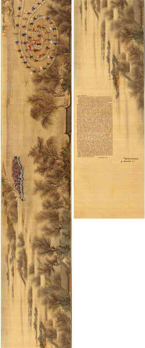 这件我好像见过的,但不记得是在哪里了。画的是乾隆在腊八这天到太液池观赏士兵们溜冰。太液池即今天北海、中海和南海的合称。