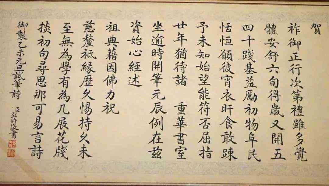 由乾隆朝进士彭元瑞书写,实物制作完成后悬挂在乾清宫。