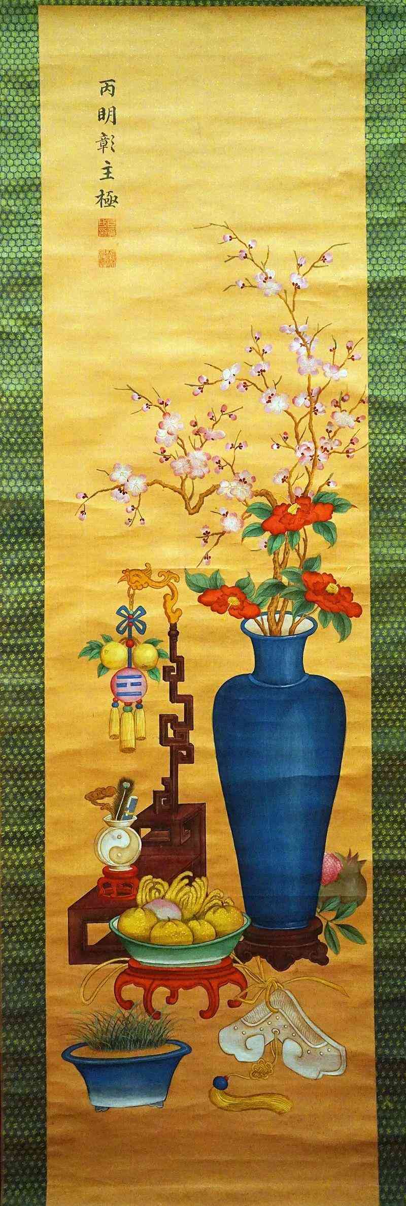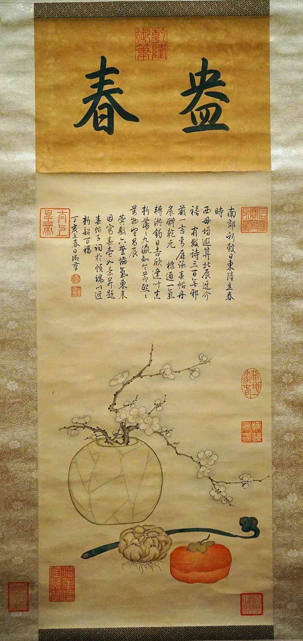 “岁轴”是在春节前由翰林学士拟选五言吉语,腊月初一由皇帝钦定,再交给宫廷画家绘制。