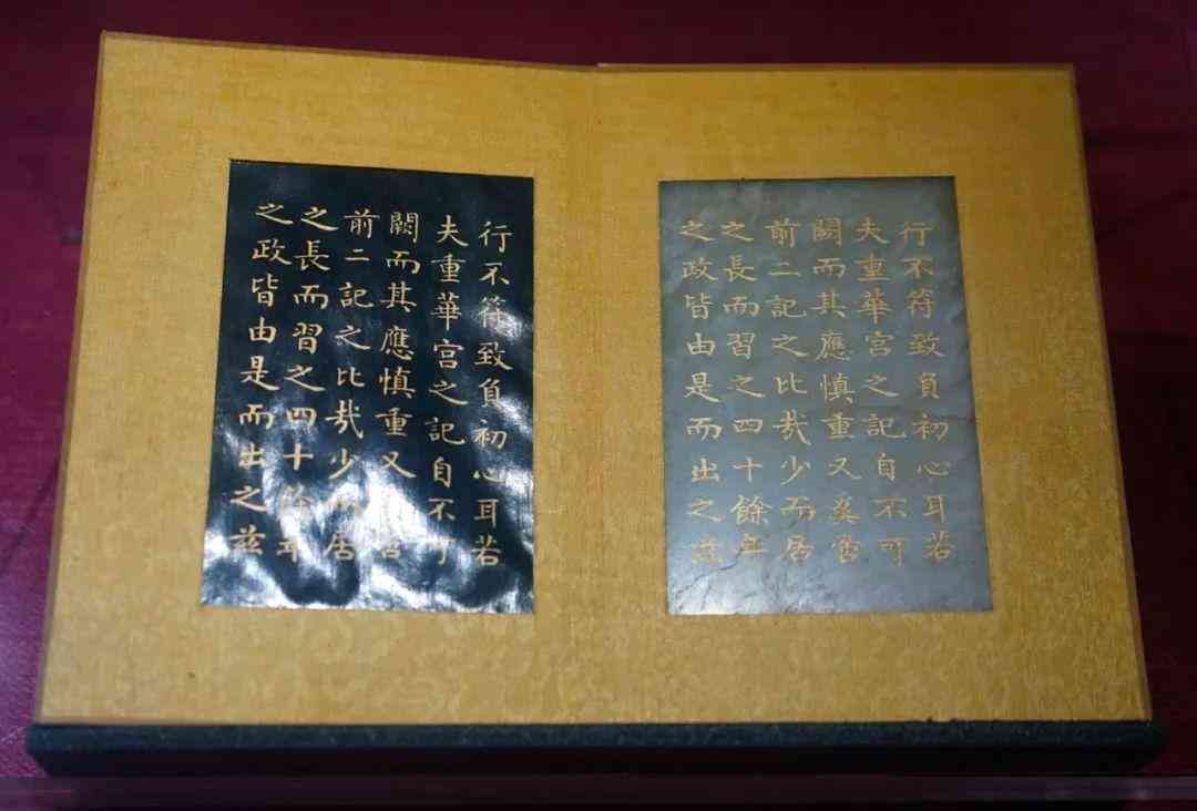 乾隆喜欢春节期间在重华宫与群臣举行茶宴。香港故宫展了另一套曹文埴书的《重华宫记》玉册,每页只有五列文字。