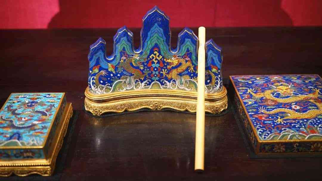 乾隆,掐丝珐琅海水云龙纹笔架、竹管翠毫笔
