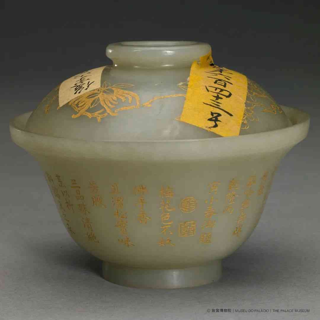 三清茶以雪水烹煮,加入松子、梅花、佛手。乾隆叫人做了一系列三清茶碗,有各种材质,都刻了他的诗,重华宫茶宴结束再分赐群臣。