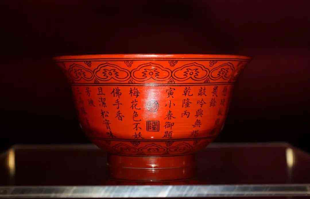 乾隆有个爱好就是让人把他的诗往各种东西上刻,包括玉石、玉琮、宋瓷、漆器等等。