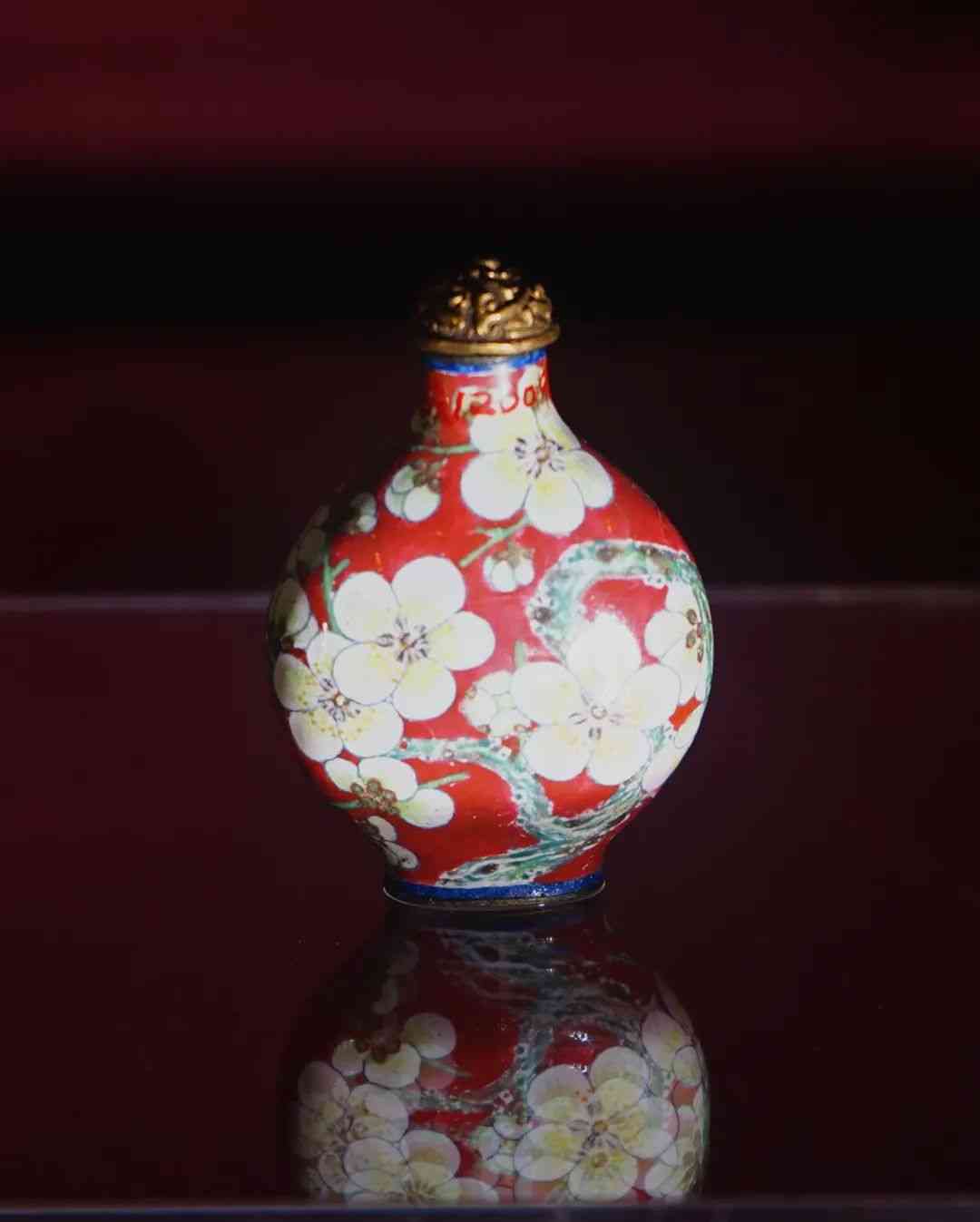 雍正,铜胎画珐琅紫地梅花图鼻烟壶
