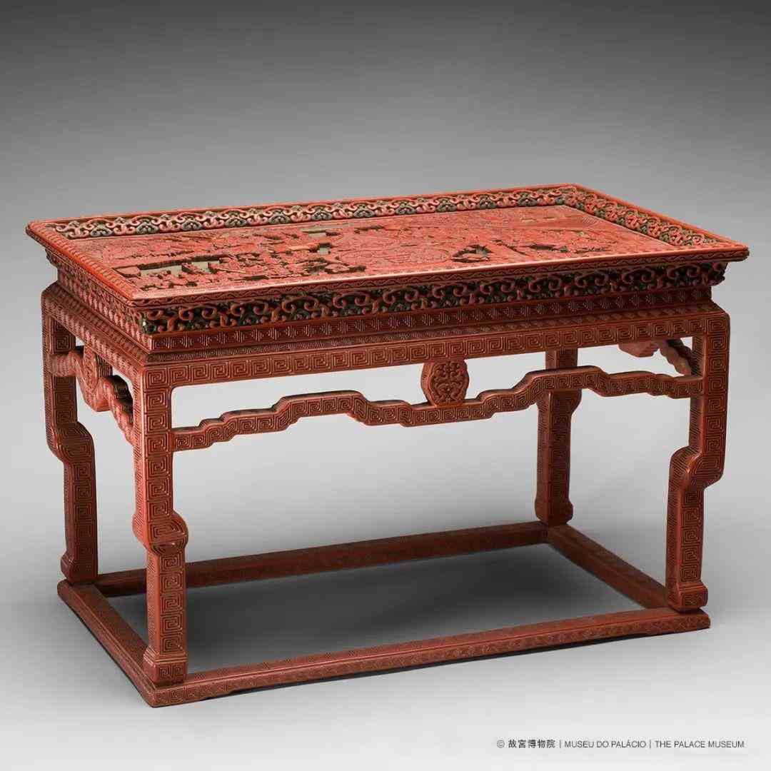 用绿、黄、红三色漆雕成,乾隆的饺子就放在这个小桌子上。乾隆九年制。