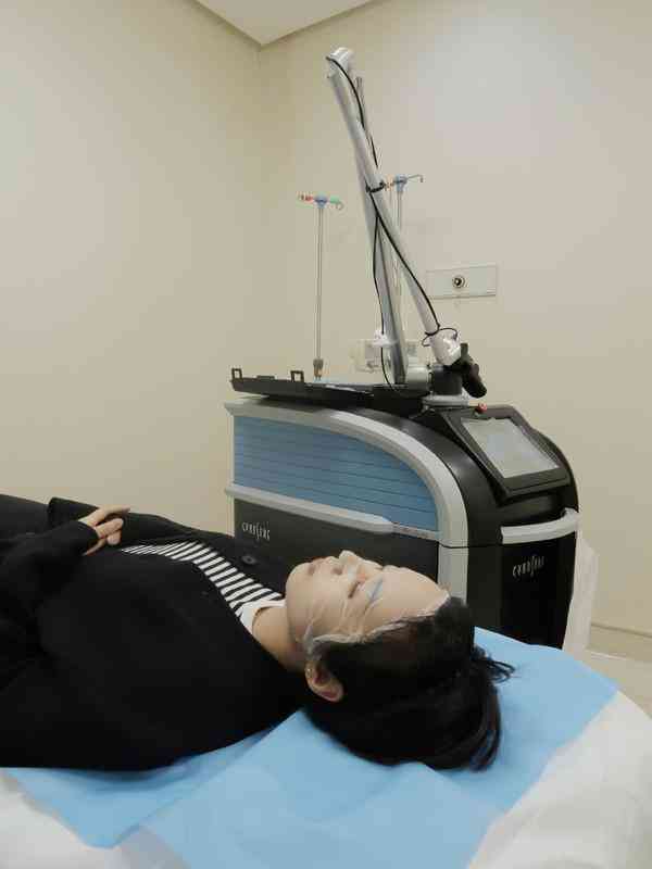 测肤后确认治疗方案,正式打激光前会先敷20分钟麻药(就像面膜一样),【平扫】模式时,几乎没什么感觉,【蜂巢】模式能明显感觉能量变大,但痛感也完全在接受范围内。