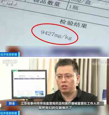 江苏省泰州市市场监管局药品和医疗器械监管处工作人员 郭全:检测的过程也很意外,我们次上机就把我们的仪器做坏了,然后第二次上又把这个仪器做坏了。美白产品做这种重金属超标一般都是超标两三倍,或者最多二十倍、三十倍,这款产品里面它的汞含量特别高,所以把我们的进液柱子做堵起来了。