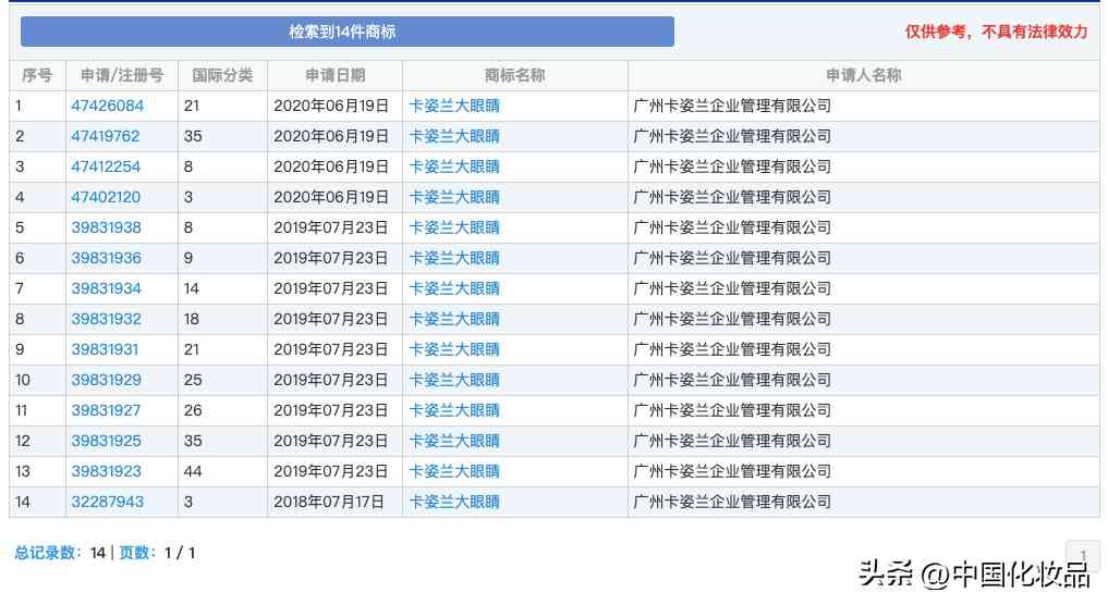 近日,卡姿兰注册了含“卡姿兰大大眼睛”、“卡姿兰夶眼睛”、“卡姿兰大大大眼睛”、“卡姿兰大大大大大大眼睛”、“卡姿兰大大大大眼睛”、“卡姿兰大大大大大眼睛”以及“卡姿兰大大大大大大大眼睛”等多个商标,这个略带幽默感的商标注册行为,引发了网友的关注,官方幽默地回复也赚得一波好感。