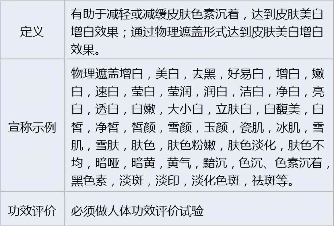 通过物理遮盖美白的产品按美白祛斑类特殊化妆品管理,此类产品在标签已注明仅具有物理遮盖作用的,可不做功效评价。