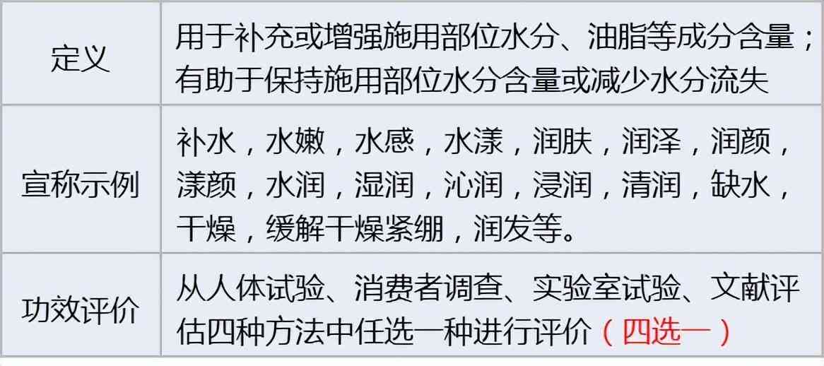 通过补充油脂达到保湿效果的也属于保湿类化妆品。保湿功效仅通过文献资料评价即可宣称。