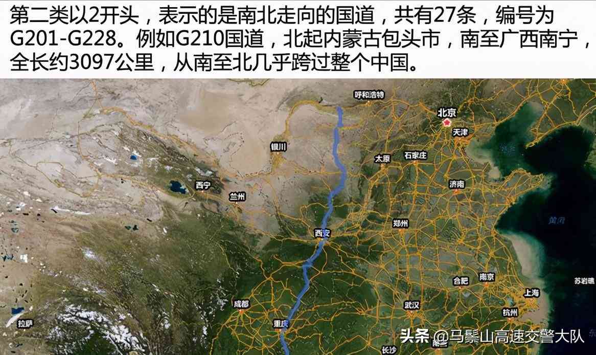 具体编号为:G201—G248(其中G226被取消),表示南北走向的国道。
