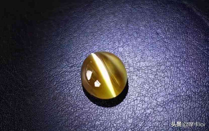 2、用单光源从猫眼石的侧面照射的话,两侧会呈现不同的颜色,比如,一颗蜜黄色的猫眼石,照射左侧会呈现蜜黄色、右侧会呈现乳白色,从右侧照射时,颜色就正好相反。