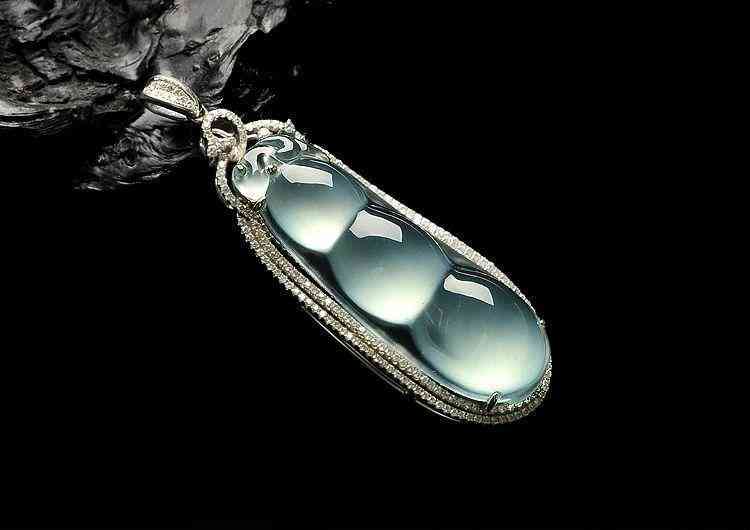 玻璃种晴水镶白金钻石金扣四季豆胸坠