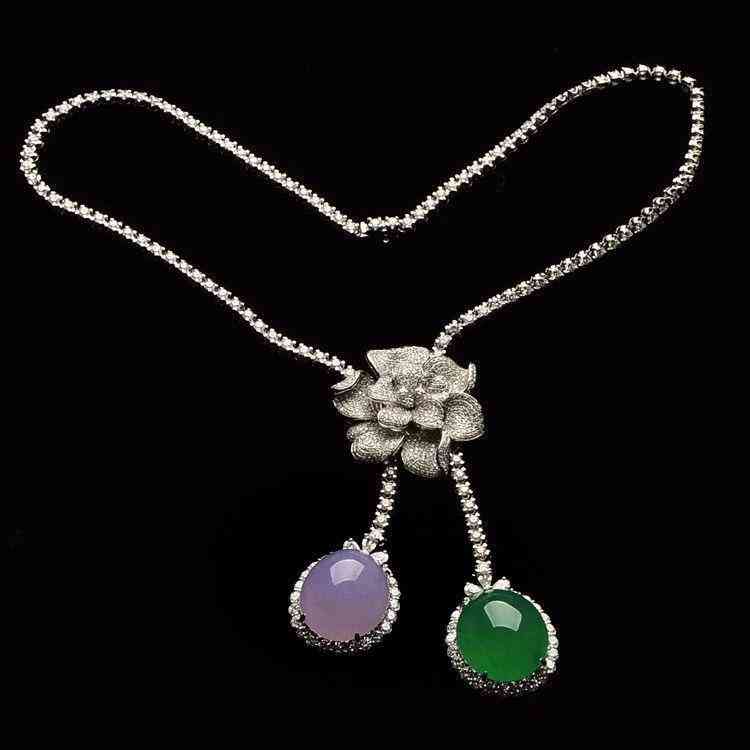 冰种紫罗兰/翠色镶白金钻石项链