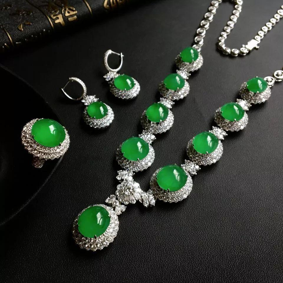 冰种阳绿镶白金钻石项链/戒指/耳坠