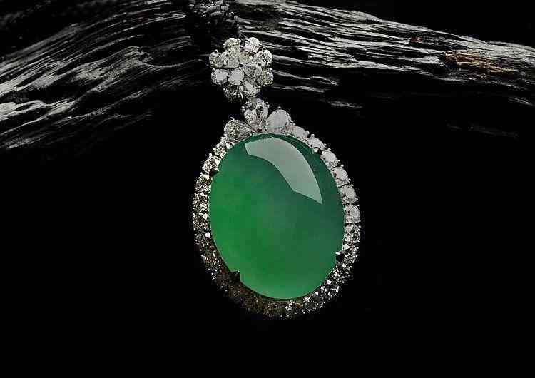 冰种阳绿镶白金钻石胸坠