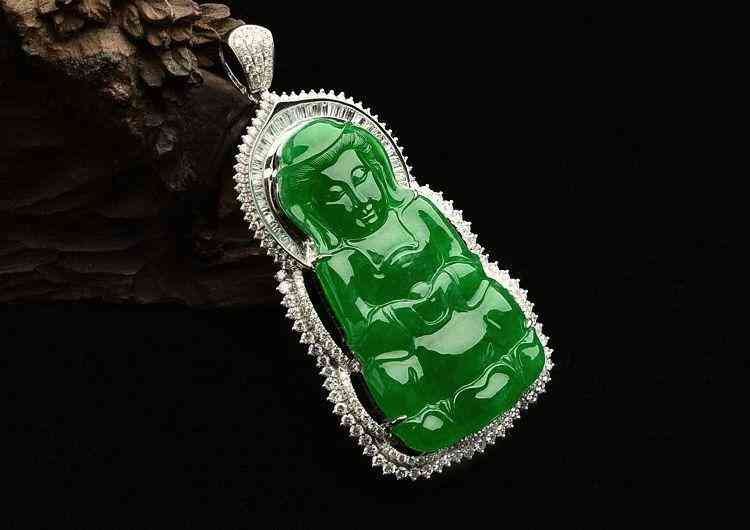 镶白金钻石糯冰种阳绿观音胸坠