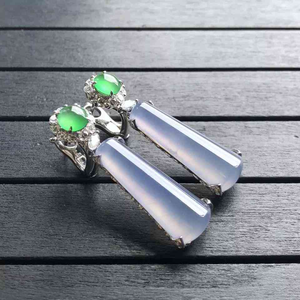 镶白金钻石冰种紫罗兰/绿晴水耳坠