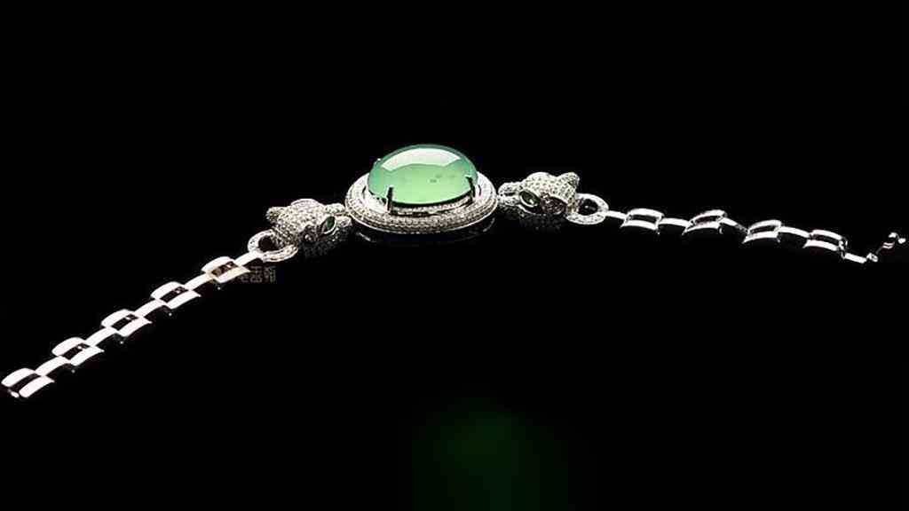 木那料冰玻种绿晴水镶白金钻石豹头手链
