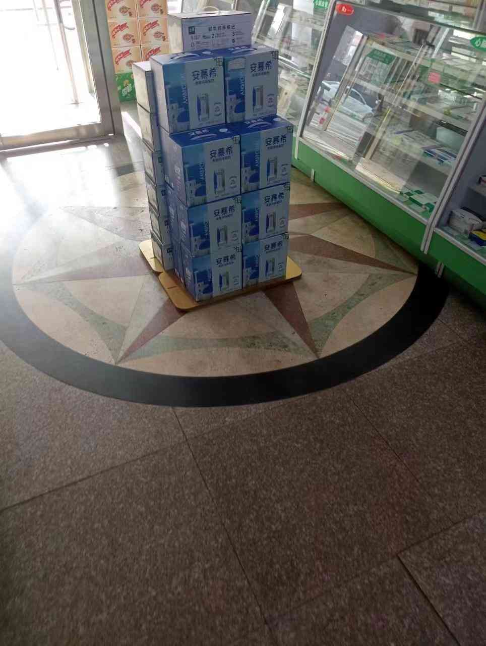 走入药店,最先映入眼帘的不是药,却是一箱箱摆放整齐的牛奶,摞了能有1米多高,共13箱,明码标价每箱49.9元。我是进来买药的,不是喝牛奶的啊,赶忙转身绕过了摆放在正门的牛奶箱,直奔药店的工作人员寻药。药店规模不小,工作人员却只有两个,让我再等一会,前面还有顾客。
