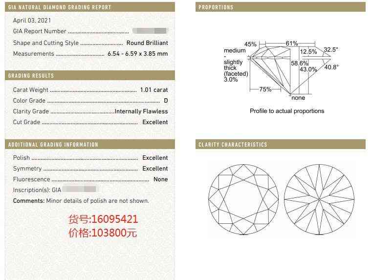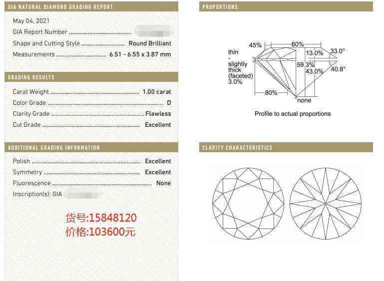 GIA证书1克拉圆形钻石 D FL 深圳 香港 北京 上海 杭州