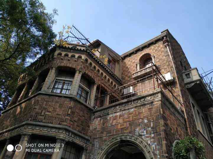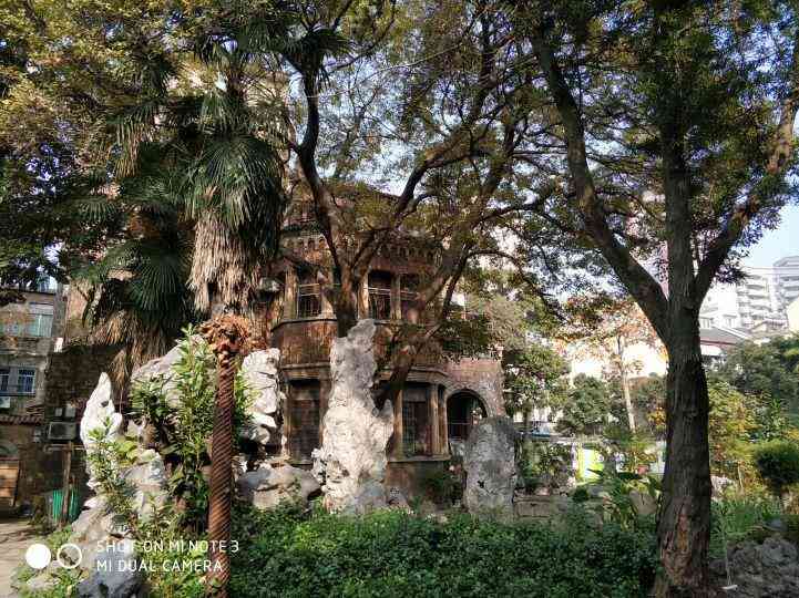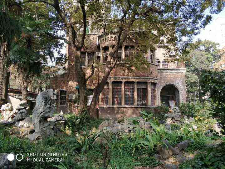 这栋住宅坐落在一个大花园中,其造园艺术的主体仿照苏州古典园林。现如今小桥犹在,流水却枯;山石风骨依然,花卉却已乱了分寸。