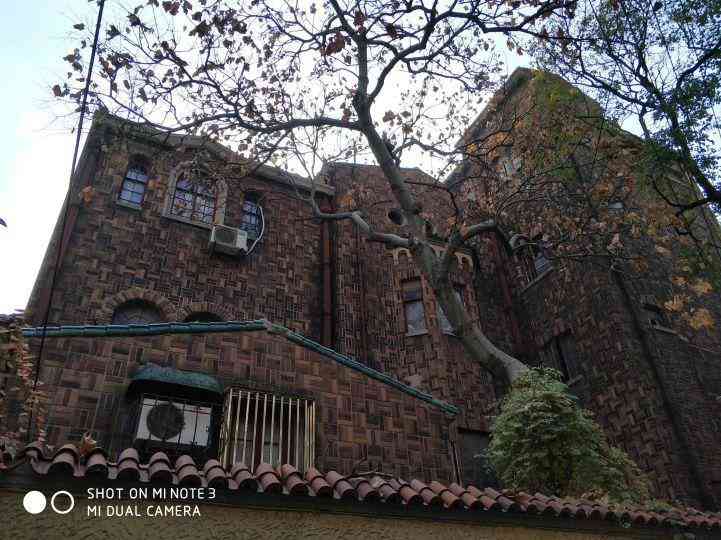 内有大小房间近40间,缓坡屋顶,红色筒瓦,拱窗以及屋檐下连续排列的小券齿装饰和弄堂入口门楣血脉一贯。这外墙贴面砖和墙体空心砖皆系进口,隔热效果很好,在盛夏,室内外温度相差九度。