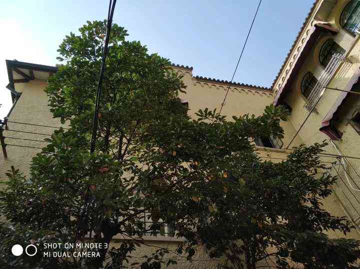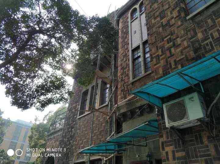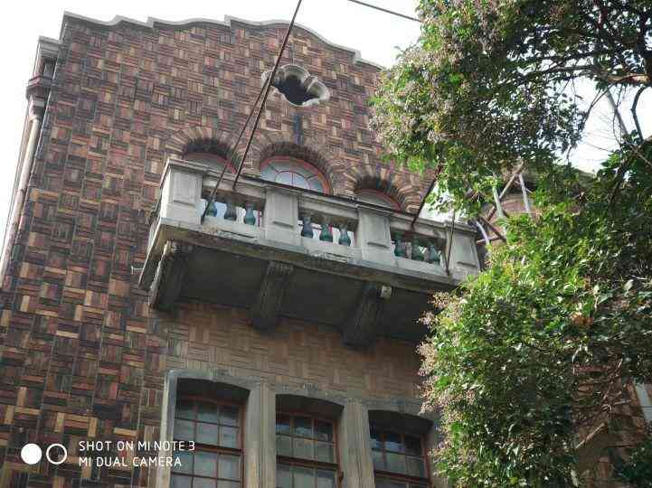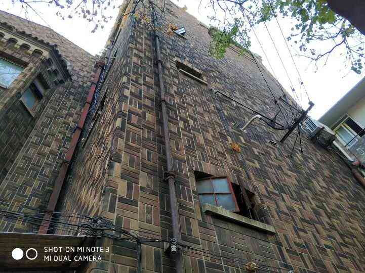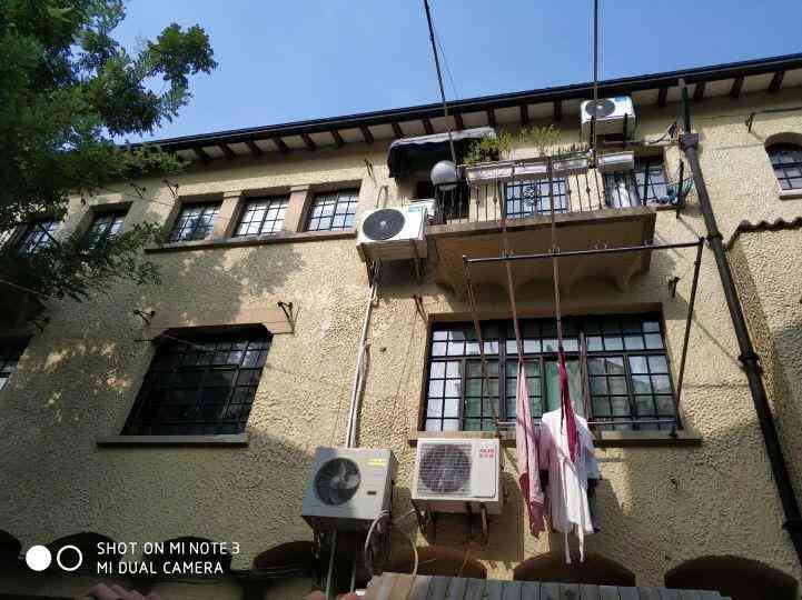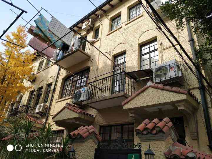 这栋西班牙式花园洋房建于1936年,高四层,基本保留当年的风貌。除了顶楼阳台私自搭建的灰色小房外,我看连外墙壁的排水管都是当年旧物吧。是铸铁的!